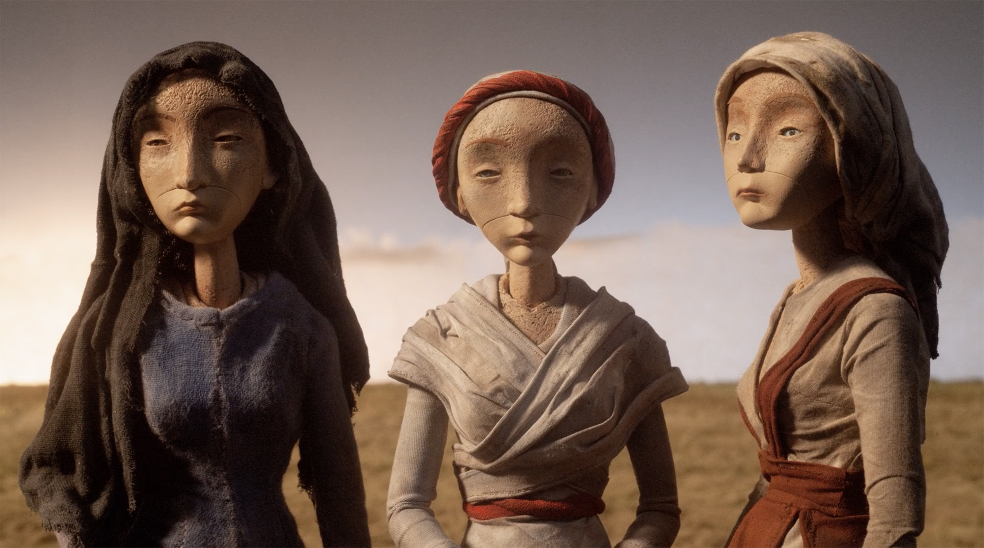 Dans Une conversation avec la publication d’animation Skwigly, Even et Mercadier partagent qu’ils ont d’abord rendu numériquement les marionnettes avant de les imprimer en 3D en résine. Les visages des sœurs sont inspirés des arts gothiques français et asiatiques du XIIe siècle, et leurs corps laissent visible l’armature en fil de fer recuit noir, une décision que les cinéastes expliquent :
