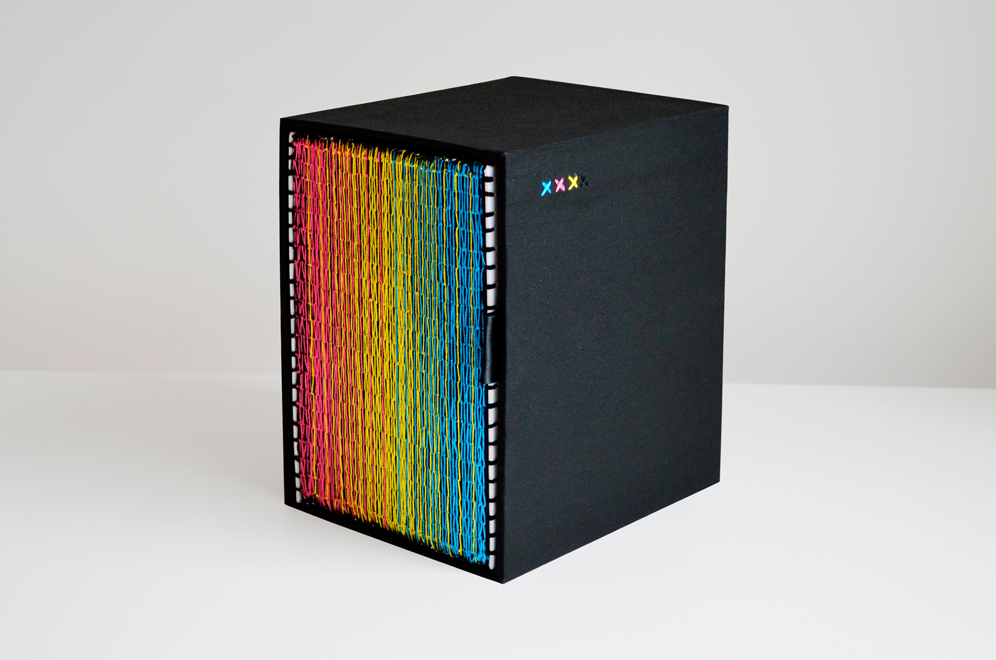 L’idée originale est venue du désir de Kasikov d’un outil de référence, semblable à des feuilles volantes d’échantillons Pantone, qu’elle pourrait partager avec des clients potentiels de conception de livres intéressés par la broderie CMJN. Au cours des six années suivantes, cependant, le projet a évolué pour devenir le livre d’artiste unique et complet qu’il est maintenant.